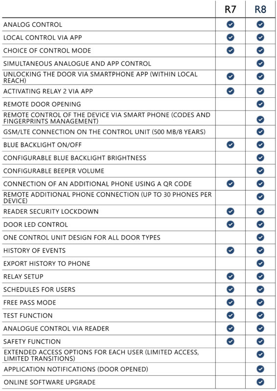 The powerful and small fingerprint reader can be built into the door leaf, next to the door or mounted on the wall. Available in R7 or R8 technology.